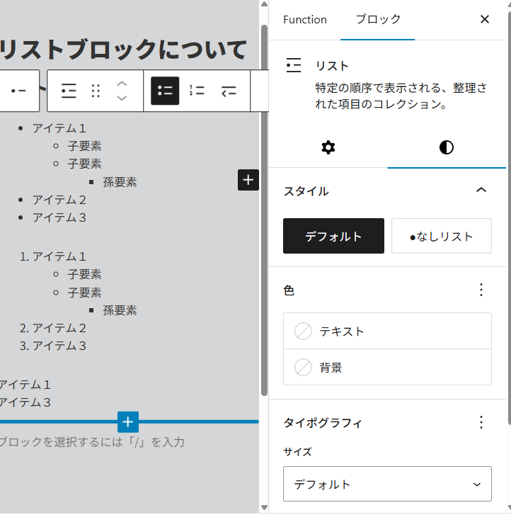 リストを作成することができます。インデントを挿入し、子要素や孫要素を作ることもできます。